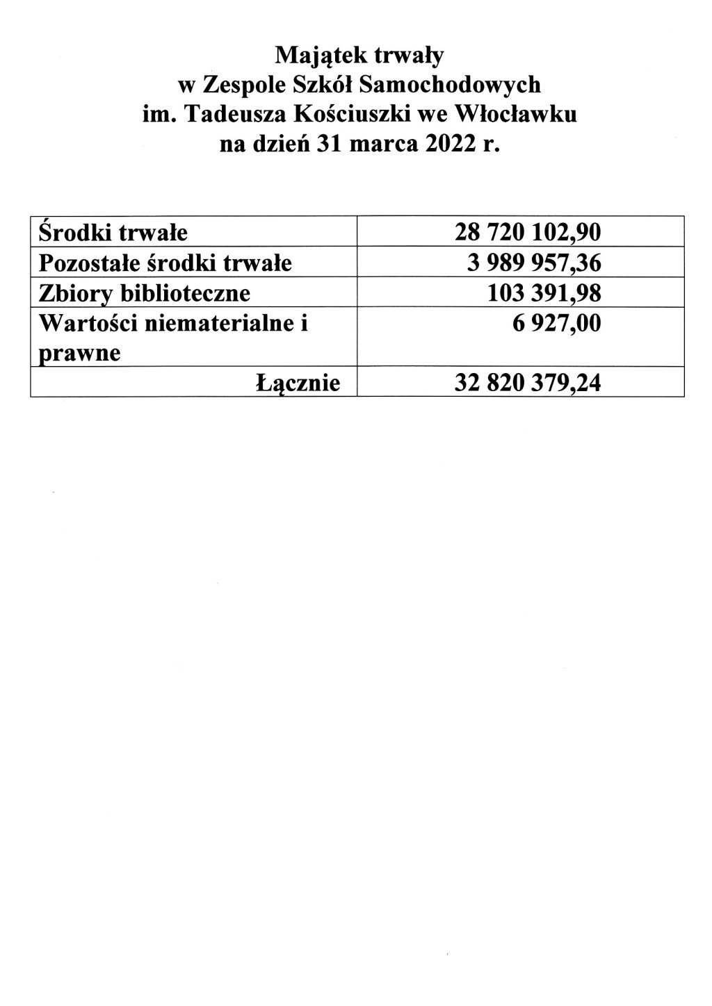 | Majątek Zespołu Szkół Samochodowych im T. Kościuszki we Włocławku na rok 2022 (Rozmiar: 117 kB, JPG) | dodany: 14:46, 08.06.2022 | przez: Konrad Adamczewski |
